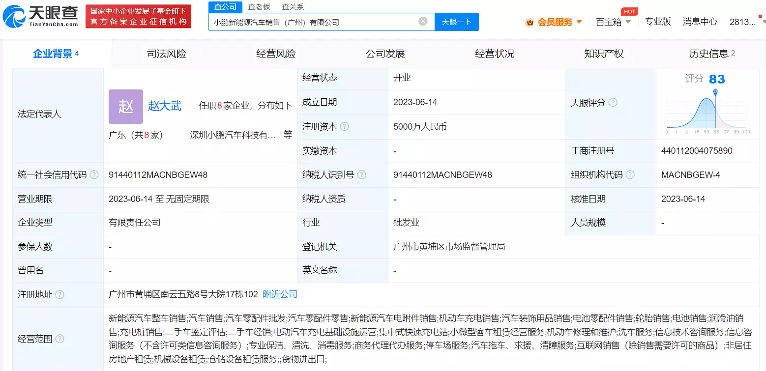 小鹏汽车在广州成立销售新公司,注册资本5000万