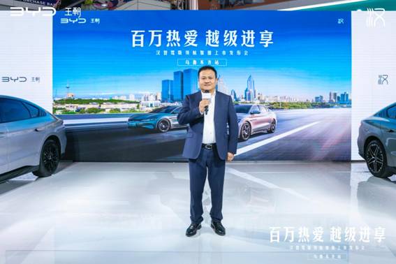 在热烈的掌声中,比亚迪王朝网新疆大区大区经理闫鑫登台致辞。他回顾了比亚迪在新疆市场的发展历程,感谢新疆消费者多年来的支持与厚爱,正是这份“百万热爱”让比亚迪得以在区域市场持续深耕。他表示,此次加推上市,不仅是比亚迪对市场需求的快速响应,更是以“越级进享”的理念,为区域中高级轿车市场树立新的价值标杆。