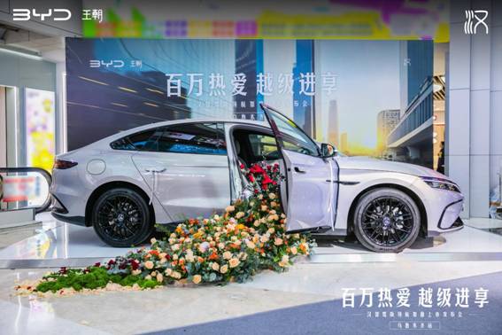 活动最后,所有嘉宾领导共同登台合影留念,记录下这一里程碑式的夜晚。随后的自由品鉴环节,嘉宾坐进驾驶舱亲身感受内饰的奢华与科技的便捷,充分展现了大家对汉EV与汉DM-i的浓厚兴趣,现场还有不少路人径直联系在场的销售人员,表现出浓厚的购买热情。