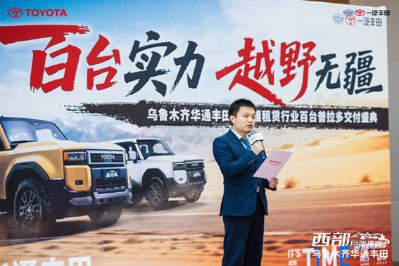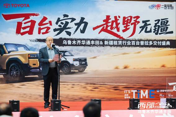 仪式上,一汽丰田新疆区销售经理廖文辉发表致辞。他表示:“一汽丰田始终致力于为消费者提供安全、耐用、高性能的汽车产品。这批交付的定制款普拉多探索版继承了一汽丰田卓越的越野基因与可靠品质,在动力、操控、舒适性及智能化方面全面升级,能够充分适应新疆复杂多样的地形与气候条件。此次百台采购是对一汽丰田品牌实力的肯定,我们也衷心感谢乌鲁木齐汽车租赁协会及各租车企业的信任。未来,我们将继续携手华通丰田这样的优秀经销商,为新疆用户提供更优质的产品与服务体验。”
