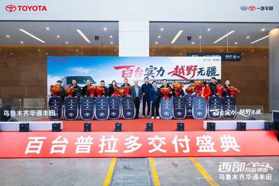 车市头条讯:12月10日,乌鲁木齐华通丰田汽车销售服务有限公司与乌鲁木齐市汽车行业租赁协会及市内多家骨干租车企业在新疆国际会展中心隆重举办了“百台实力·越野无疆”百台普拉多交付盛典。活动上,乌鲁木齐华通丰田汽车销售服务有限公司交付100台一汽丰田定制款普拉多探索版。此次大规模采购不仅体现了新疆汽车租赁市场对一汽丰田品牌与产品力的高度认可,也彰显了行业对华通丰田专业服务与综合实力的信赖。协会领导、车企代表及一汽丰田新疆区域负责人、多家主流媒体共同见证了这一行业盛事。