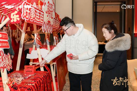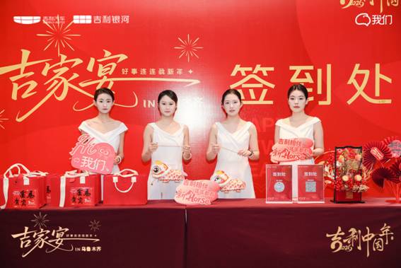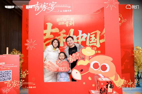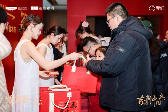移步至精心布置的“吉利新年市集”,年味扑面而来——红色主题装点、琳琅满目的特色好物有序陈列。这里不仅是礼品的领取站,更是一个充满惊喜与趣味的互动空间。家人朋友们漫步其间,挑选属于自己的一份新年心意:或许是寓意吉祥的春联福字,又或是带着巧思的定制小物。